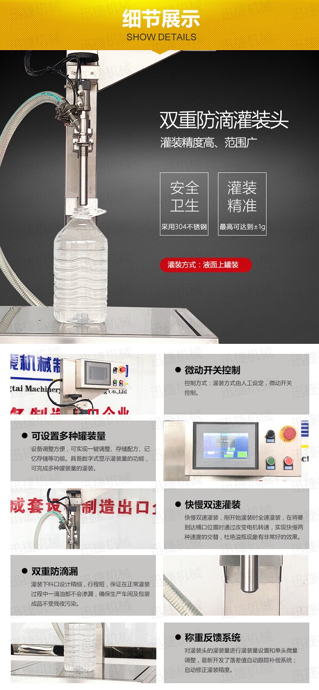 微量調(diào)整,稱重灌裝機的精度在于落差值的大小【也就是灌裝嘴與容器的距離之間,灌裝完后