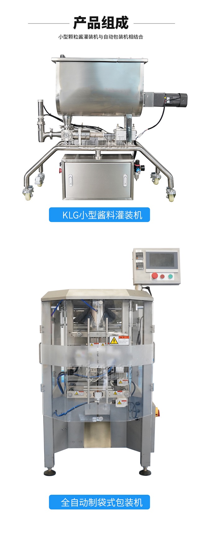 本機(jī)器主要用于調(diào)味品醬料的自動(dòng)化包裝,機(jī)器安裝有橫向螺帶式攪拌,使油醬混合均勻,確保灌裝精度和產(chǎn)品包裝成品的均勻性。灌裝計(jì)量設(shè)備安裝有萬(wàn)向輪,管路鏈接均采用快拆接頭,方便灌裝機(jī)拆卸移動(dòng)清洗。包裝設(shè)備采用全伺服驅(qū)動(dòng)器,包裝速度快,運(yùn)行穩(wěn)定。設(shè)備構(gòu)成組件:攪拌式定量灌裝機(jī)一臺(tái)管道鏈接組件2米。