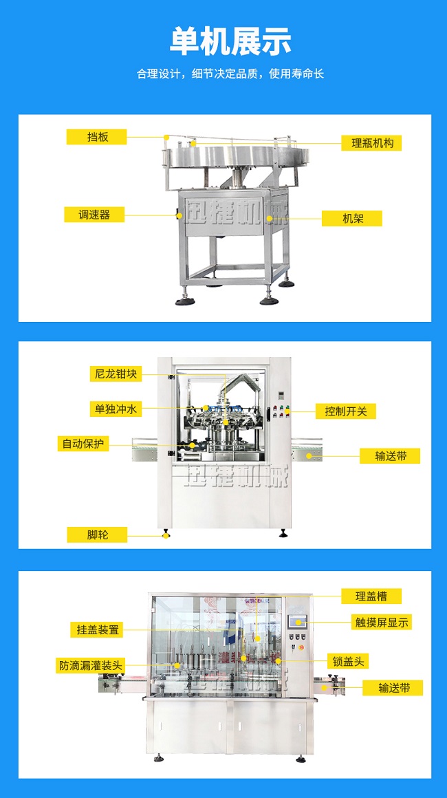 本灌裝流水線設備具有穩(wěn)定可靠、自動化水平高,相比同類產(chǎn)品有著更長的使用年限,維護簡單,整線中各設備的協(xié)調(diào)性、連貫性強,整線設計合理等特點。灌裝設備采用系統(tǒng)結(jié)構(gòu),為當今行業(yè)內(nèi)水平,整線滿足量產(chǎn)化、集成化生產(chǎn)的需要。