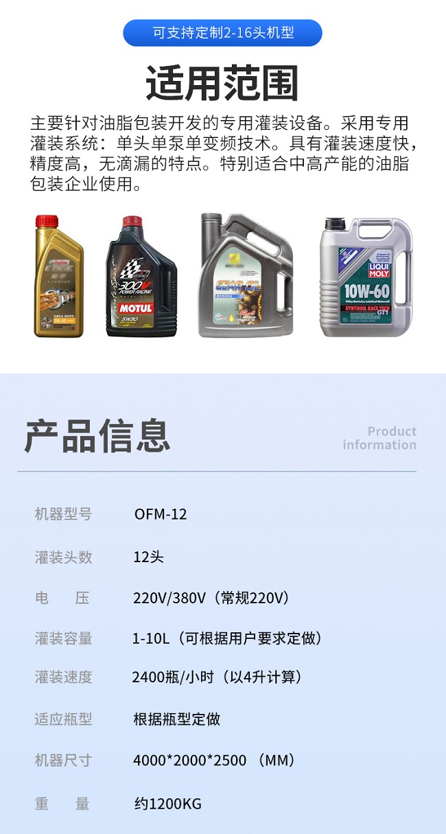這款全自動十二頭三排潤滑油灌裝機(jī)是本公司專為潤滑油廠家研發(fā)的自動化設(shè)備,這款潤滑油灌裝機(jī)2-16頭可定制,防起沫防滴漏。主要針對油脂包裝開發(fā)的專用灌裝設(shè)備。采用專用灌裝系統(tǒng):單頭單泵單變頻技術(shù)。具有灌裝速度快,精度高,無滴漏的特點。特別適合中高產(chǎn)能的油脂包裝企業(yè)使用。