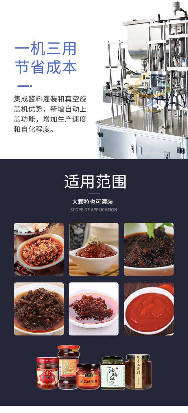 現(xiàn)在的生活節(jié)奏也比較快,牛肉醬也比較方便購買,網(wǎng)上、超市都有的售賣,所以許多的商家開始與全自動牛肉醬灌裝機廠家直銷進行合作,全自動牛肉醬灌裝機您知道如何選購嗎?這時候在灌裝顆粒比較大或者比較粘稠或比較干的醬料的時候,我們?nèi)詣优H忉u灌裝機采用柱塞式進行計量,保證定量準確可靠,可用于多種瓶型,換瓶型只需要更換一套模具,模具更換的時間約為15分鐘左右,為了迎合社會發(fā)展的主題,全自動牛肉醬灌裝機效率高,幫助了很多企業(yè)解決了人工難題也更受消費者歡迎。
