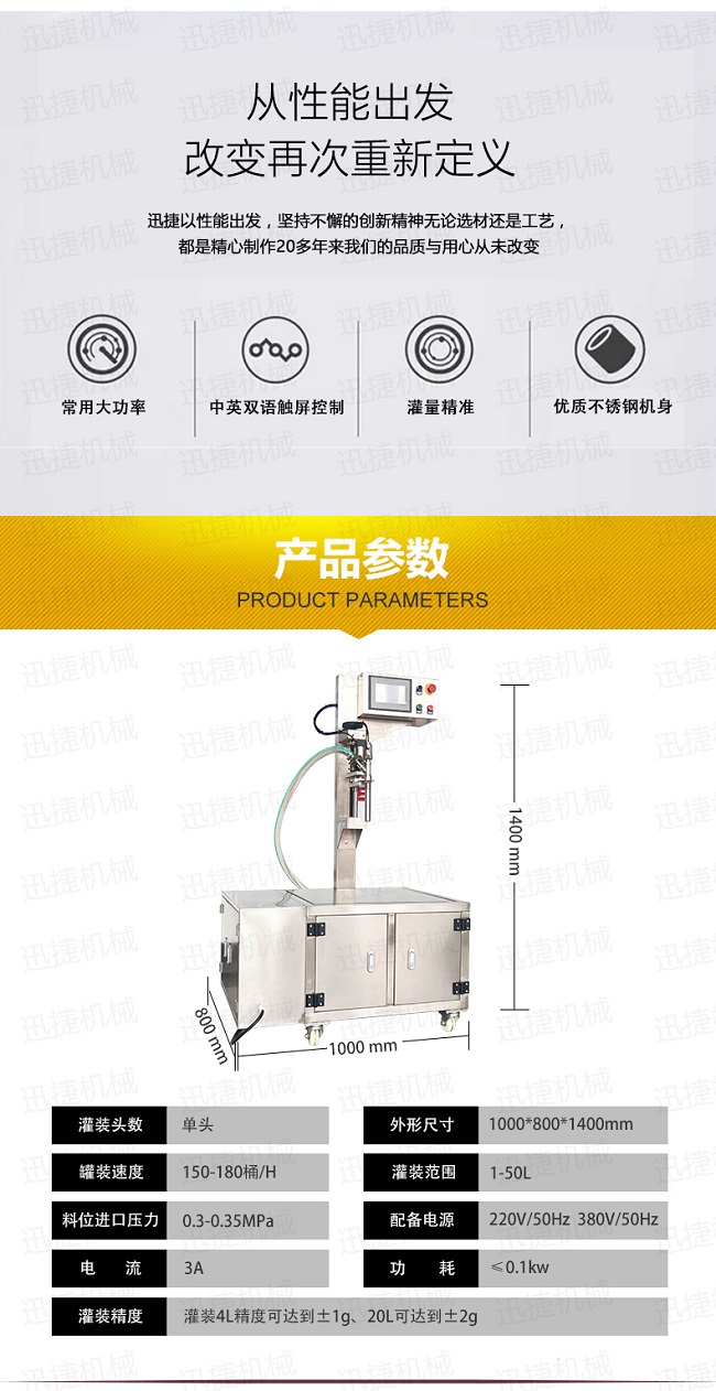 2.本設(shè)備罐裝精度精準(zhǔn),罐裝4L精度可達到±1g、20L可達到±2g。