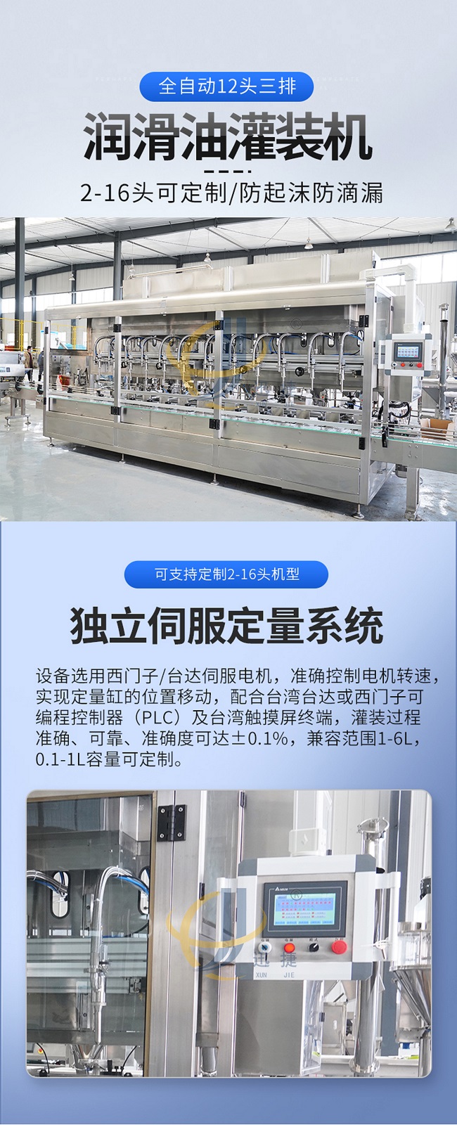 這款全自動十二頭三排潤滑油灌裝機(jī)是本公司專為潤滑油廠家研發(fā)的自動化設(shè)備,這款潤滑油灌裝機(jī)2-16頭可定制,防起沫防滴漏。主要針對油脂包裝開發(fā)的專用灌裝設(shè)備。采用專用灌裝系統(tǒng):單頭單泵單變頻技術(shù)。具有灌裝速度快,精度高,無滴漏的特點。特別適合中高產(chǎn)能的油脂包裝企業(yè)使用。