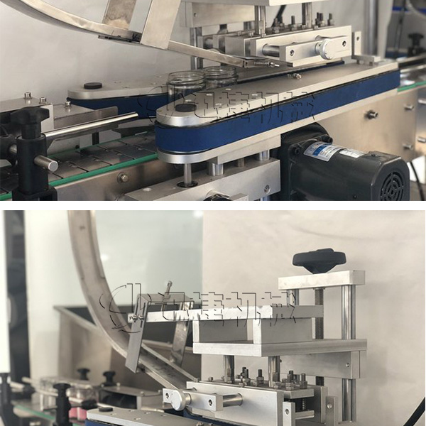 玻璃瓶封口機設(shè)備采用氣囊式全密封真空式結(jié)構(gòu),旋合式旋蓋原理,真空度可按需設(shè)定。瓶蓋預旋緊機構(gòu):理蓋落蓋到瓶口后,對馬口鐵蓋進行預旋,保證蓋子旋鈕點準確進入到瓶口旋絲內(nèi),100%保證抽真空及旋蓋效果。解決了客戶擔心真空度的問題。